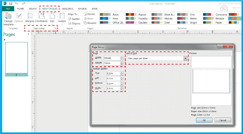 .W przypadku wizytówki o wymiarach 8,5 x 5,5 cm, ustaw szerokość na 89 mm (8,9 cm), a wysokość na 59 mm (5,9 cm).