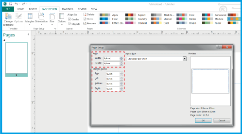 .Przejdź do (strzałka w prawo). Otworzy się okno (obraz poniżej), w którym możesz zdefiniować ustawienia dokumentu.