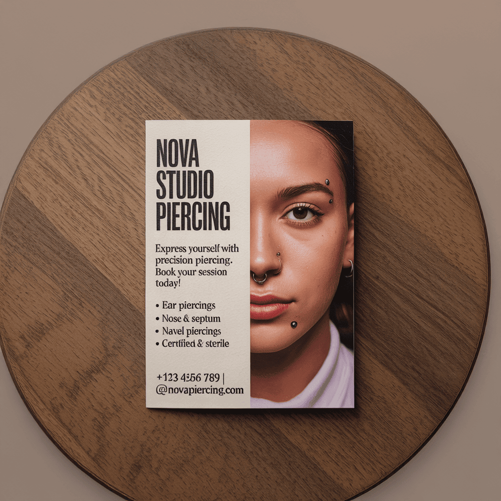 - Odważne ulotki promujące usługi piercingu.